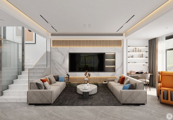 您的位置:中华装修网 >装修案例 >诺德名府160平现代简约风格别墅